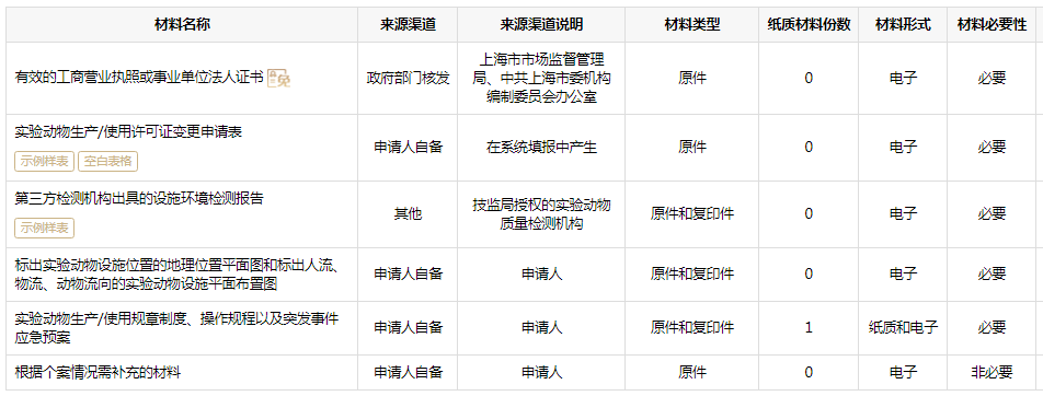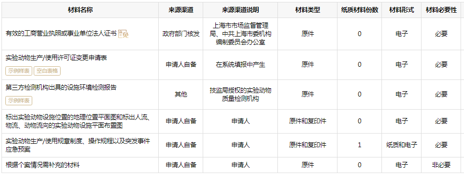 實驗動物生產(chǎn)許可證(變更)申請材料
