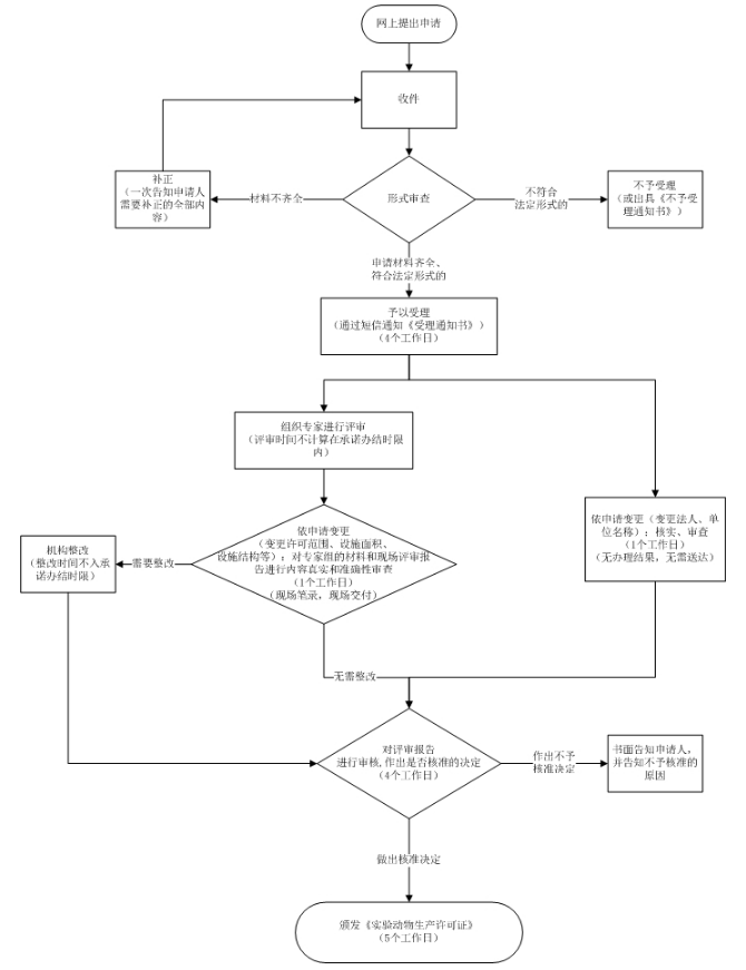 實驗動物生產(chǎn)許可證(新辦)流程圖